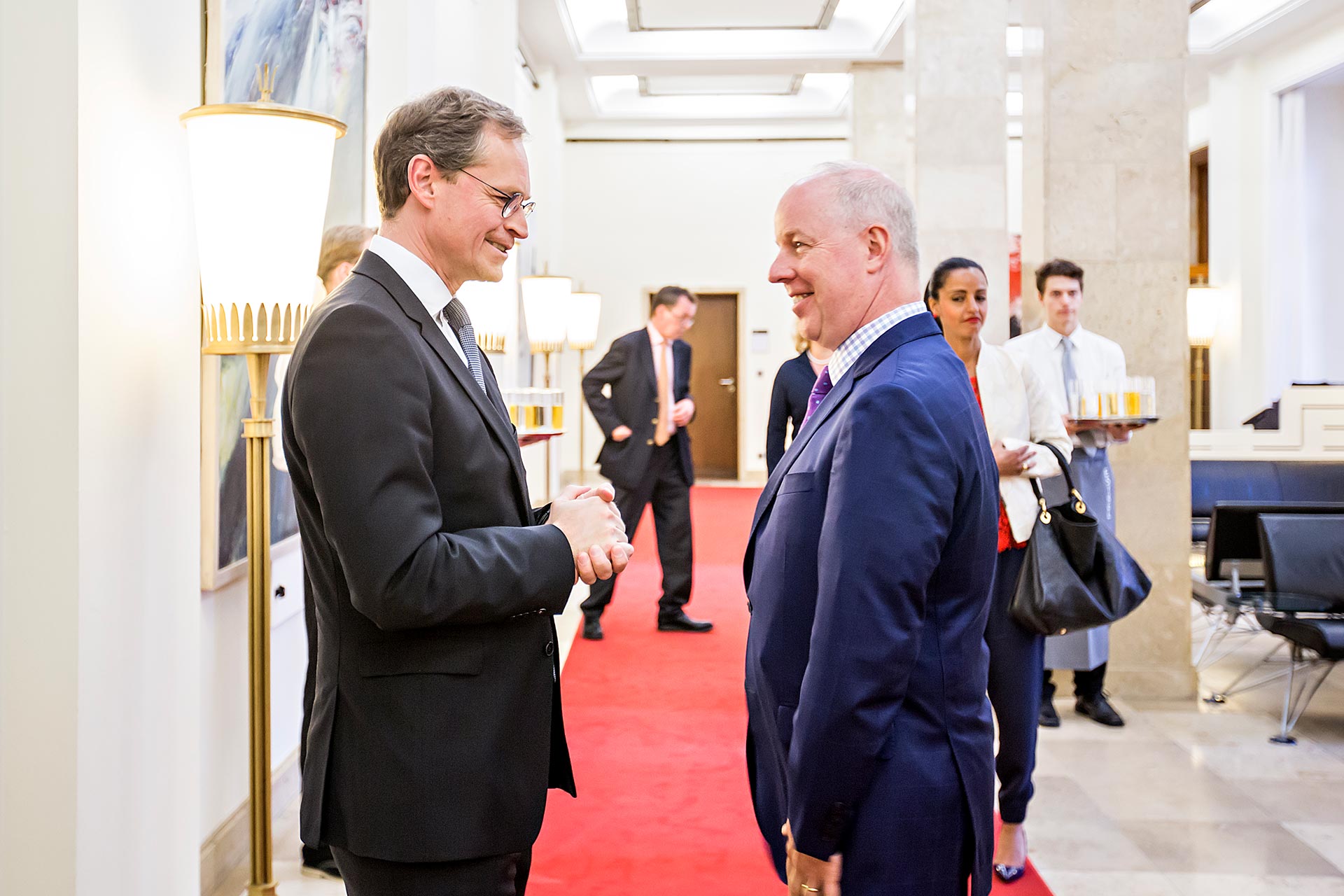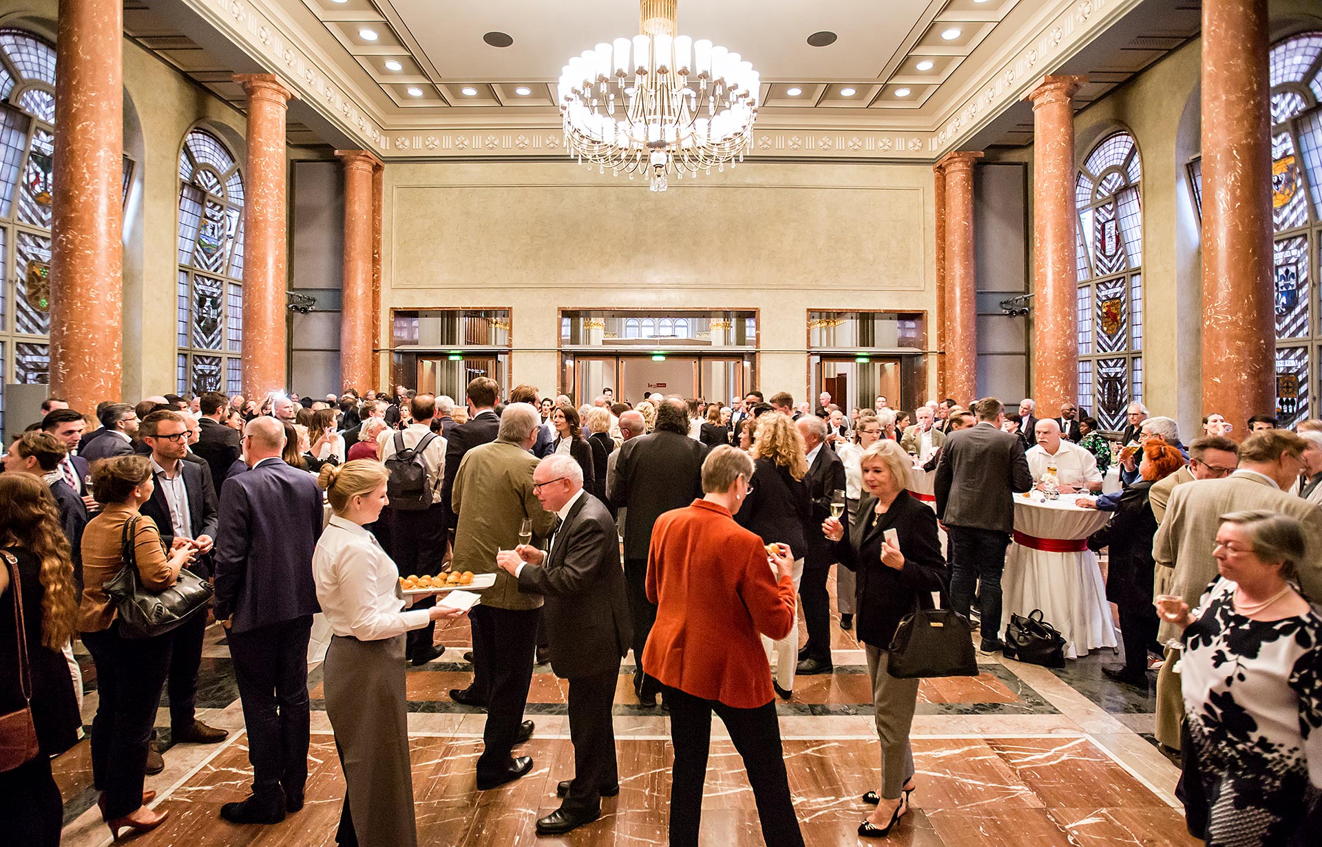 Bei einem anschließenden Empfang auf Einladung des Regierenden Bürgermeisters von Berlin klang die 15. Verleihung der Otto-Hahn-Friedensmedaille aus. Wir freuen uns über diesen würdigen und festlichen Abend im Berliner Rathaus.