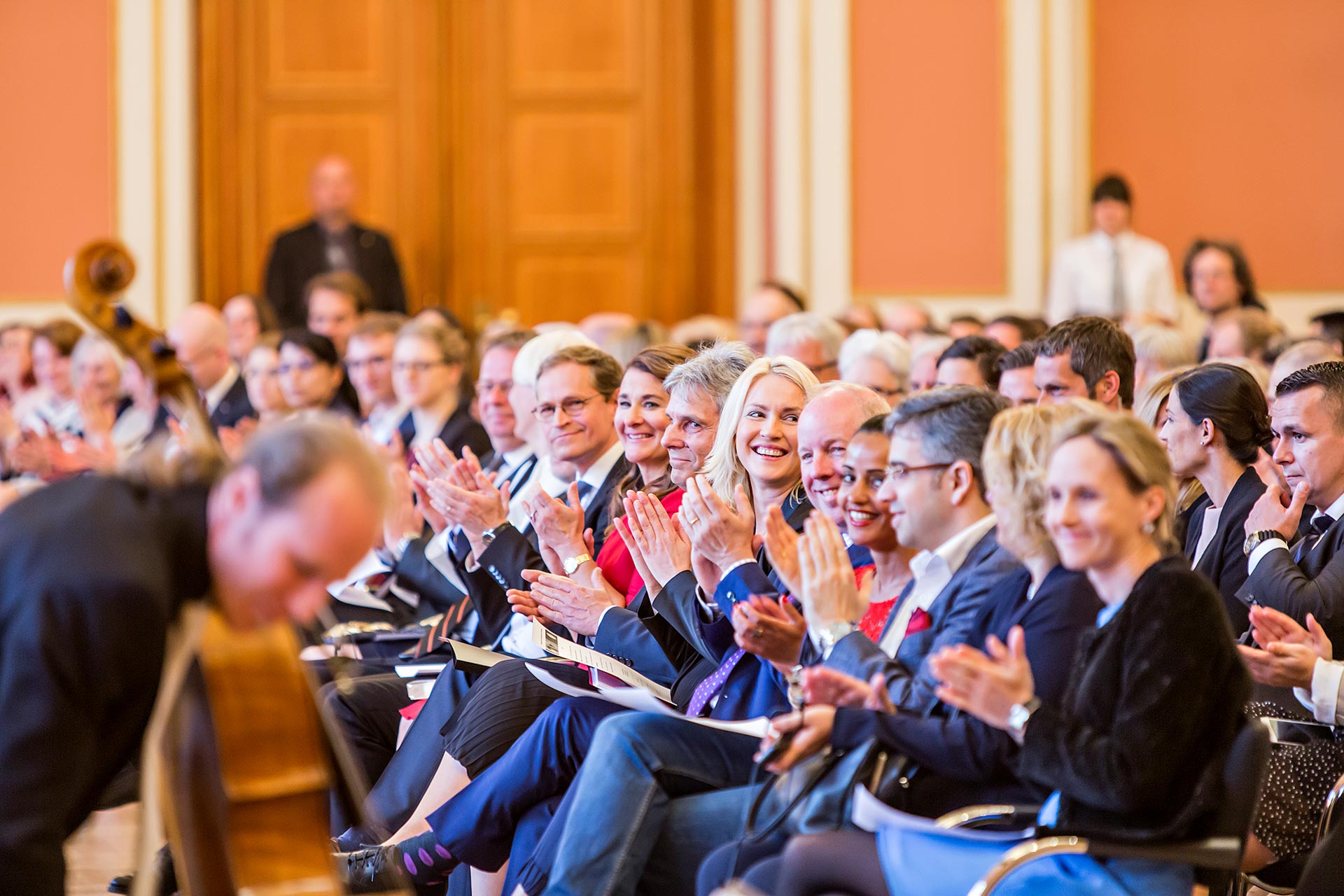 Die diesjährige Medaillenverleihung fand mit über 300 geladenen Gästen im Großen Saal des Berliner Rathauses statt. Sowohl Michael Müller, der Regierende Bürgermeister von Berlin, als auch Dr. Lutz-Peter Gollnisch, der Vorsitzende des DGVN-Landesverbandes, betonten in ihren Eröffnungsreden noch einmal Melinda Gates´ herausragende Verdienste beim Kampf gegen extreme Armut und für eine bessere Gesundheitsversorgung. Dietrich Hahn, der Enkel Otto Hahns und Stifter der Medaille, zählte die Gemeinsamkeiten von Melinda Gates und Otto Hahn auf und verkündete, dass ihr Handeln ganz im Sinne eines humanitären Handeln ist, wie es sich Otto Hahn vorgestellt und gewünscht hätte.