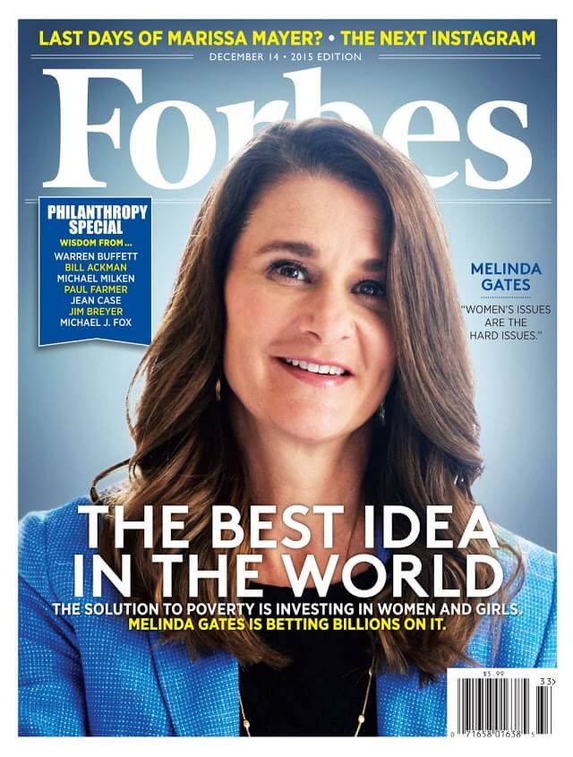 Die erste Idee zur Gründung einer Stiftung kommt Bill und Melinda bei einer gemeinsamen Reise in den Kongo 1993. Kurze Zeit später gründen sie dann zusammen mit Bills Vater die William H. Gates Foundation, welche dann 1999 mit der Gates Learning Foundation zusammengefü̈hrt und in Bill & Melinda Gates Foundation ungenannt wird. Am Anfang noch ausgelegt auf die Versorgung von Bibliotheken mit Computern und Windows Produkten zuerst in den USA und dann auch weltweit, ändert Melinda jedoch im Laufe der Zeit den Stiftungsfokus hin zu globalen Gesundheits- und Entwicklungsthemen. Den Grundstein für die heutige Größe und Reichweite der Stiftung legt 2006 eine Schenkung Warren Buffets im Wert von 30 Milliarden Dollar. Eine Restrukturierung der Stiftung in die drei Schwerpunkte Globale Gesundheit, Globale Entwicklung und Arbeit/Bildung in den USA folgt. Mit Warren Buffet zusammen gründen Bill und Melinda auch die Initiative „Giving Pledge“, welche weltweit vermögende Individuen dazu animieren will, einen Großteil ihres Vermögens für wohltätige Zwecke zu spenden. Bis heute haben sich auch schon 139 Milliardäre und Millionäre dieser Initiative angeschlossen.