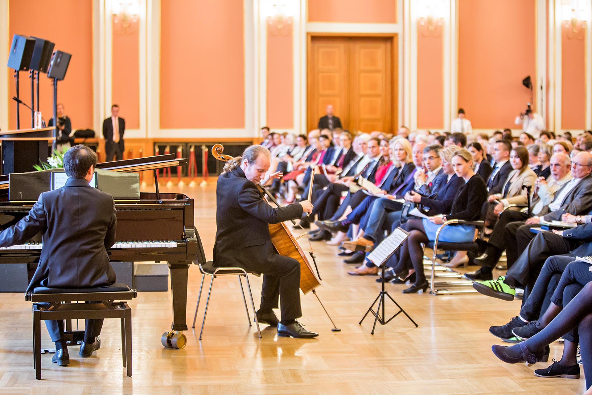 Für die musikalische Untermalung sorgten „Zwischen Cello und Klavier“ mit Christopher Herrmann (Violoncello) Professor Christopher Miltenberger (Flügel).