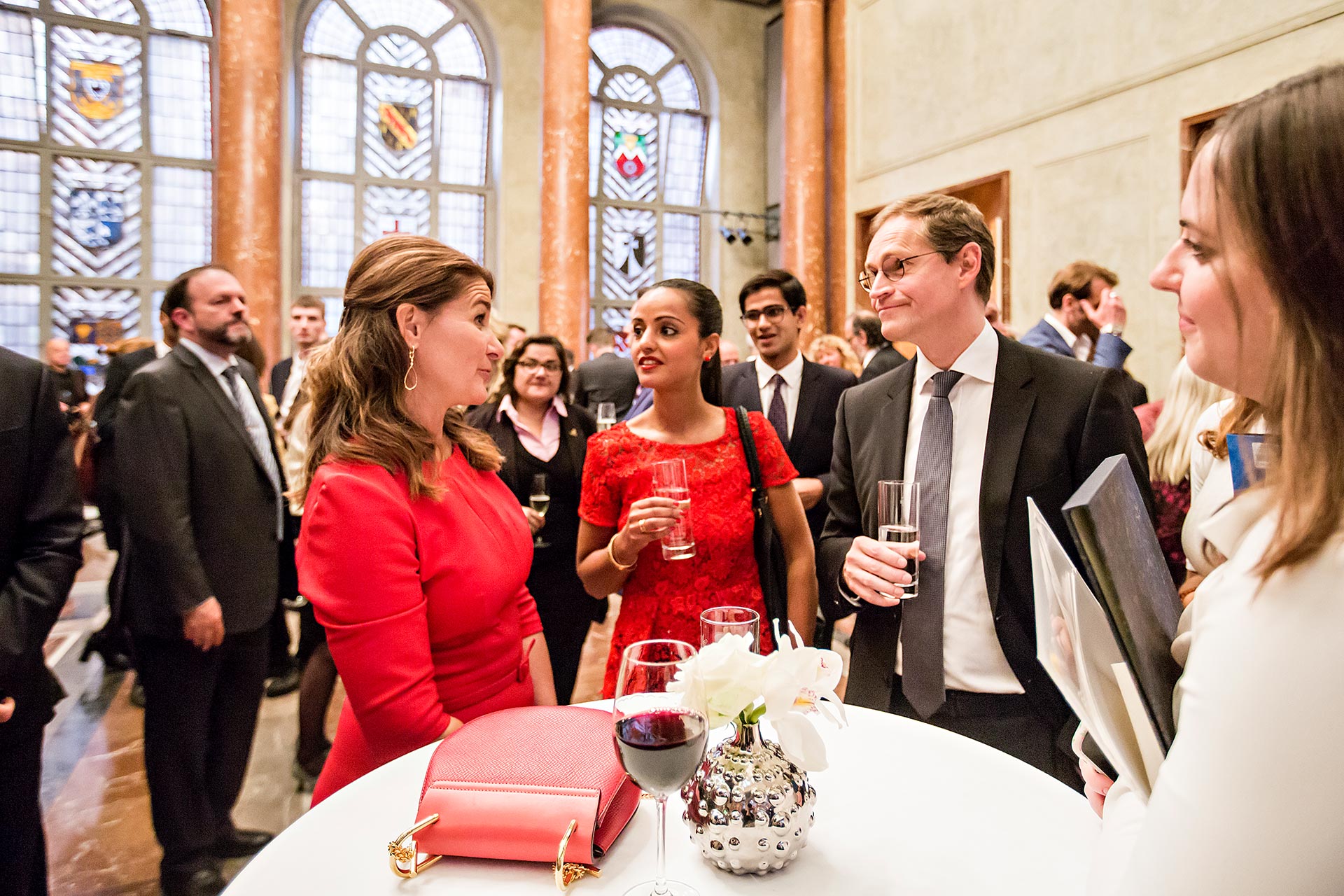Bei einem anschließenden Empfang auf Einladung des Regierenden Bürgermeisters von Berlin klang die 15. Verleihung der Otto-Hahn-Friedensmedaille aus. Wir freuen uns über diesen würdigen und festlichen Abend im Berliner Rathaus.